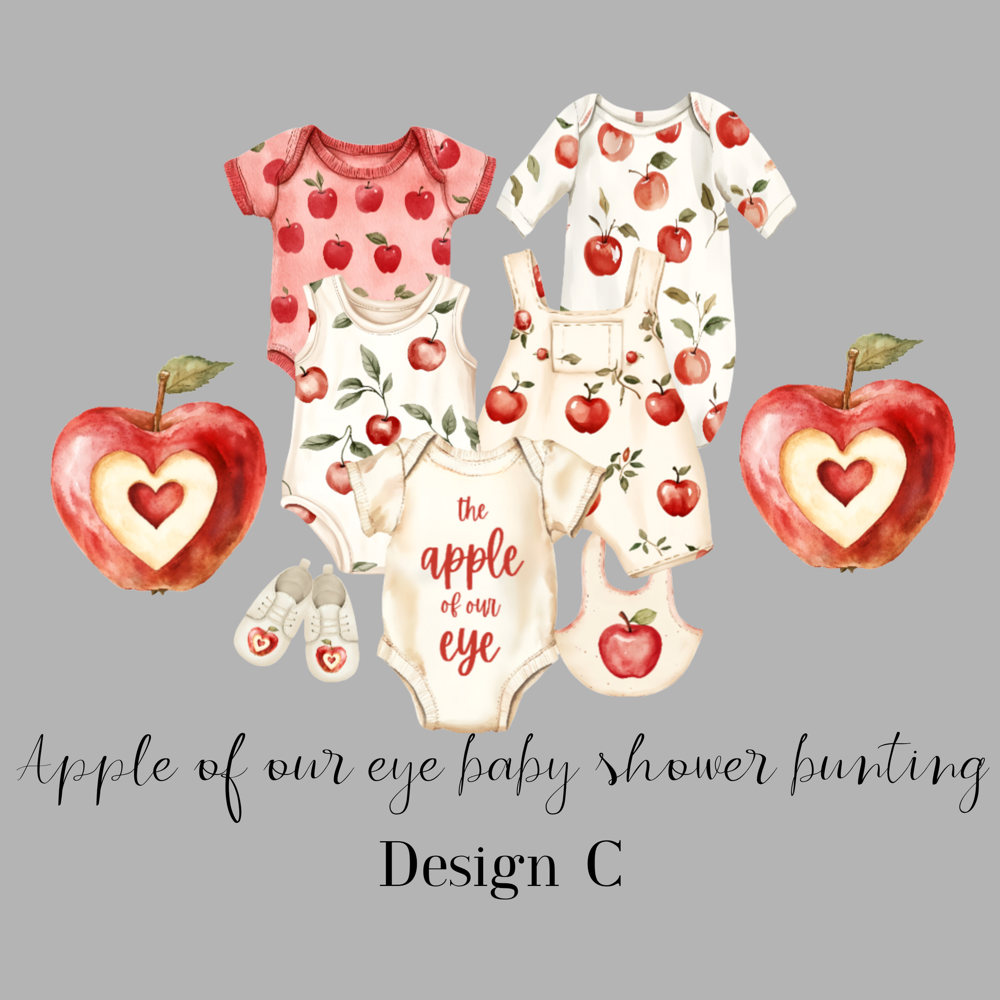 Apple of Our Eye Baby Shower Bunting – Baby Clothesline Garland Decoration
